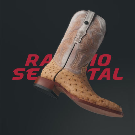 Adéntrate en el lejano oeste con nuestras botas vaqueras con estampado rústico de avestruz y parte superior color miel de indio. Estas botas de calidad están hechas 100 % de cuero y están confeccionadas en México por artesanos expertos. Con su estilo western, estarás listo para cualquier aventura.