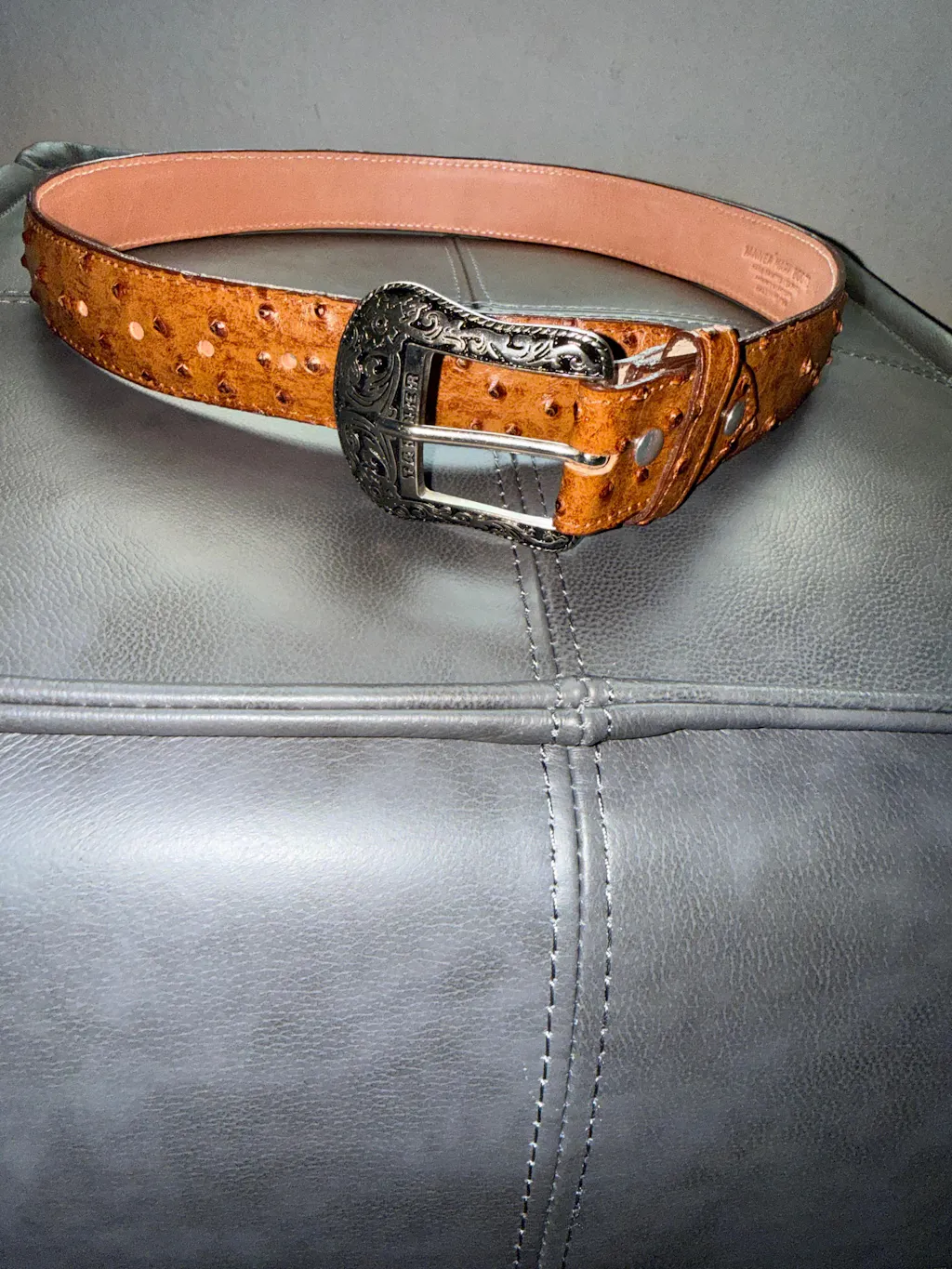 TANNER MARK BELT Rustic Cognac Ostrich Print